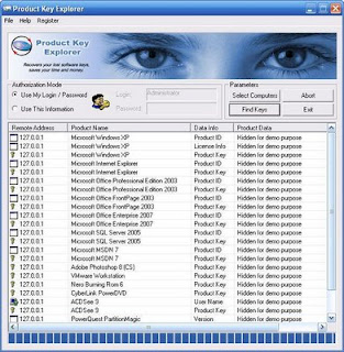 Descrição: Product Key Explorer é um aplicativo que permite rastrear o número de licença de softwares instalados no seu trabalho. O programa encontra e recupera uma senha de software perdida ou esquecida, salva e armazena um backup atualizado das licenças em um local central.Também mostra a senha do produto para Windows, MS Office, SQL Server e outros 200 softwares instalados em seu computador local ou nos outros computadores da rede.